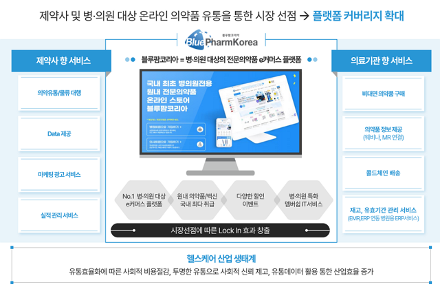 한편, 블루엠텍은 이번 IPO를 통해 확보한 공모자금을 통해 플랫폼 서비스 고도화, 해외진출, 물류센터 설비 고도화 등에 활용하여 외형성장을 도모할 예정이라고 합니다. 블루엠텍은 의약품 유통업계의 선두주자로 알려져 있는데요. 디지털 기반의 의약품 유통업 단일화 서비스를 제공하며 국내 의약품 유통 시장을 공략하고 있습니다.