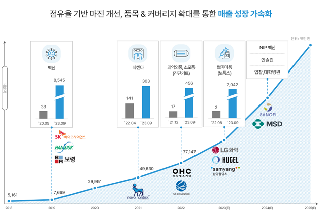 커머스 사업을 지속적으로 하기 위해서는 서비스 고도화와 상품 다각화, 고객 확보가 최우선이라 할수 있을 텐데요. 해외 제약사 직거래를 M사 등 타 제약사로 확장하며, 물류 서비스, 약국시장 진출, 회원기반 서비스 확대 등 다양한 전략을 진행할 예정입니다.