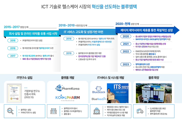 한편, 블루엠텍은 이번 IPO를 통해 확보한 공모자금을 통해 플랫폼 서비스 고도화, 해외진출, 물류센터 설비 고도화 등에 활용하여 외형성장을 도모할 예정이라고 합니다. 블루엠텍은 의약품 유통업계의 선두주자로 알려져 있는데요. 디지털 기반의 의약품 유통업 단일화 서비스를 제공하며 국내 의약품 유통 시장을 공략하고 있습니다.