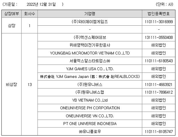 액션스퀘어 관련 몇 가지 정보를 정리해보았습니다. 우선 액션스퀘어 계열사에 대해 정리해보겠습니다. 액션스퀘어는 와이제이엠게임즈에 뿌리를 두고 있으며, (주)액션스퀘어데브의 경우 의결권 과반을 소유하여 종속회사로 두고있습니다.